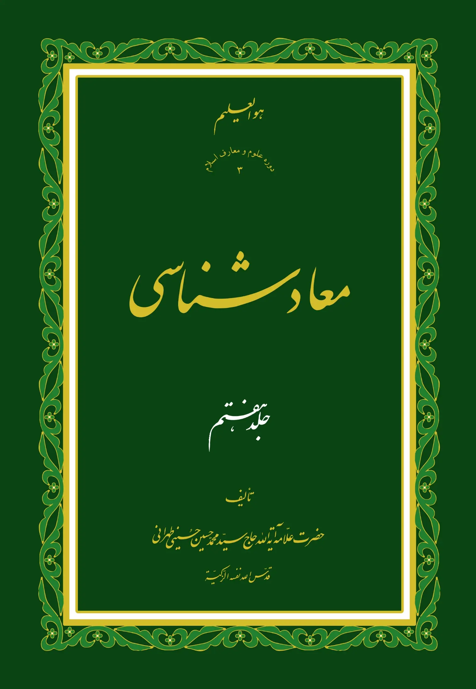 کتاب شریف «معاد شناسی» از آثار نفیس علامه آیةاللَه حاج سید محمدحسین حسینی طهرانی قدّسسرّه میباشد. این اثر ارزشمند به قلم خود ایشان، در حقیقت صورت مکتوب و تفصیلی سخنرانیهای ایشان در موضوع معاد است. در این مباحث، کیفیت سیر انسان در دنیا و عالم غرور، و نحوۀ تبدّل عالم غرور به عالم حقائق، و رسیدنِ انسان به خدا نشان داده میشود. محوریت این ابحاث روی «باطنبودنِ آخرت نسبت به دنیا» پایهگذاری شده است که با قلمی شیوا و سلیس پرده از حقایق ناشکفتۀ عالم آخرت و معاد برداشته و شیفتگان حریم معبود را به تدبّر در معانی این اثر ذیقیمت فرامیخواند. در جلد هفتم از این مجموعه پیرامون «کیفیت نامۀ عمل انسان» و «کیفیت شهادت بر اعمال انسان در قیامت» سخن بهمیان آمده است. اهم مباحث این مجلّد: • معنای رسیدن نامۀ عمل از سمت راست و چپ • نامۀ بهشتیها از جانب سعادت داده میشود • نتیجه اعمال انسان ملازم نفس انسان است • نامۀ عمل، عین حقیقت ملکوتی عمل است • مقرّبان و مخلَصان نامۀ عمل ندارند • مخلَصین و مقرّبین مدهوش ذاتِ حقاند • شاهدان بر اعمال و شرایط شهادت بر عمل • شاهدان بر اعمال از نیّتها خبر دارند • شرط شهادت، احاطۀ علمیه بر پنهانیهاست • شهادت پیامبران، ائمه علیهمالسلام، ملائکه، اعضاء و جوارح، زمان و مکان، جمادات، قرآن در روز قیامت و کیفیت شهادت آنها • جمادات در قیامت شعور دارند و شهادت میدهند • اختلاف مساجد در فضیلت، ناشی از اختلاف نور آنهاست • نورانیت زمان و مکان، تابع نورانیتِ اهل آنهاست
