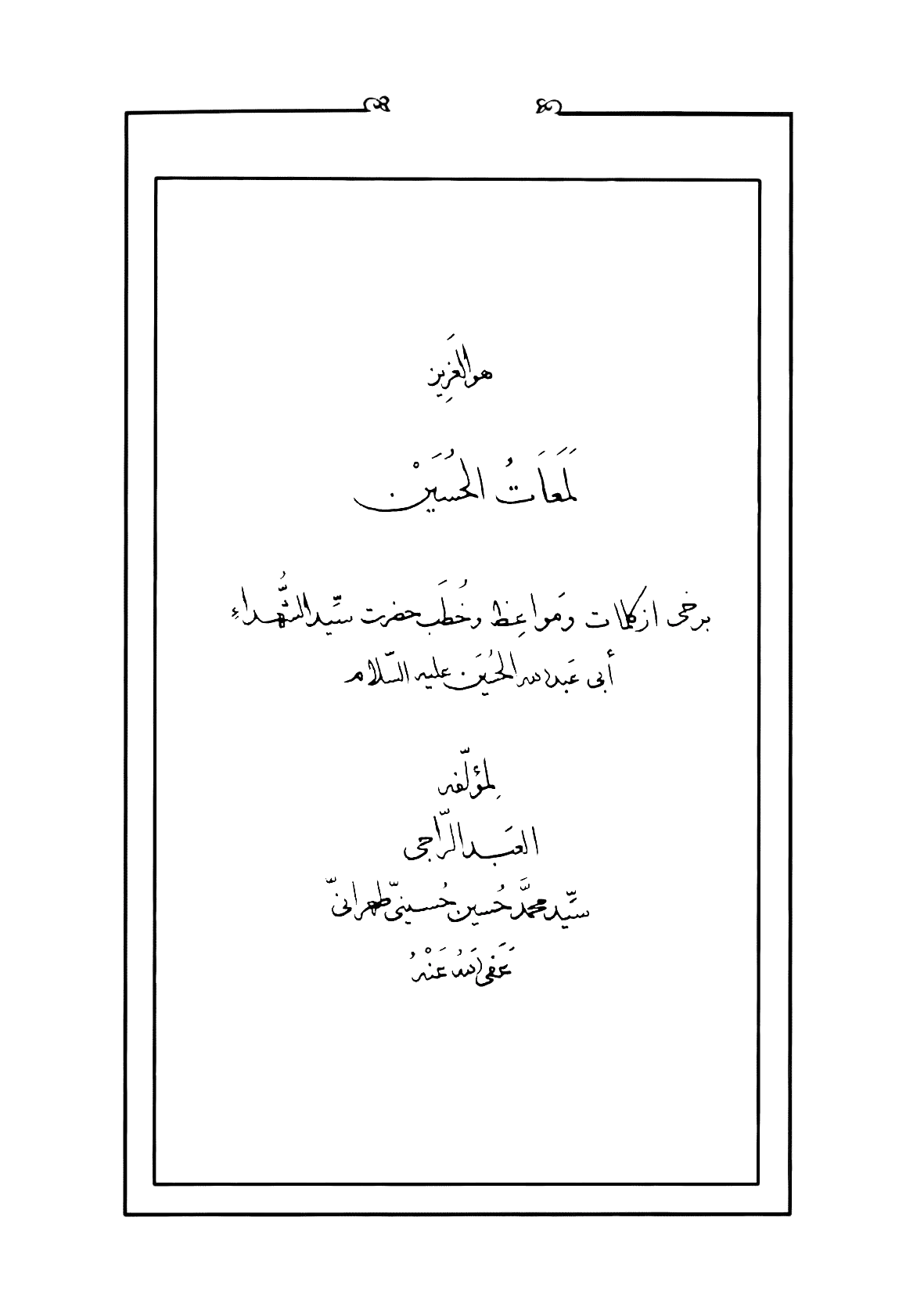 کتاب لمعات الحسین علیه السلام تالیف گرانسنگ حضرت علامه آیة الله حاج سید محمد حسین حسینی طهرانی قدس سره است. این کتاب شریف حاوی برخی کلمات و مواعظ و خُطَبِ دُرربارِ سید و سالار شهیدان، حضرت اباعبدالله الحسین علیهالسلام، با ذکر مدارک معتبر همراه با ترجمهای شیوا و مختصر از حضرت علامه میباشد. هدف ایشان از اینکه از شرح و بسط خودداری کرده و فقط به ترجمه اکتفا شده، این بود كه به واسطه ايجاز و اختصار، قابل آن باشد كه بر روى پردهها و تابلوها نوشته شده و در مجالس و محافل، خصوصاً مجالس عزاداری و تکایا همچون اشعار محتشم نصب گردد، تا شرکتکنندگان، در عین استفادۀ سمعی از خُطَبا و گویندگانِ راستین، استفادۀ بصری نیز نموده و عین آن کلمات را حفظ، و سرمشقِ زندگی و عمل خود قرار دهند. مضاف بر آن، وقایع شهادت سیدالشهداء علیهالسلام در روز عاشورا با استناد به منابع معتبر نیز در این رساله ذکر شده است.