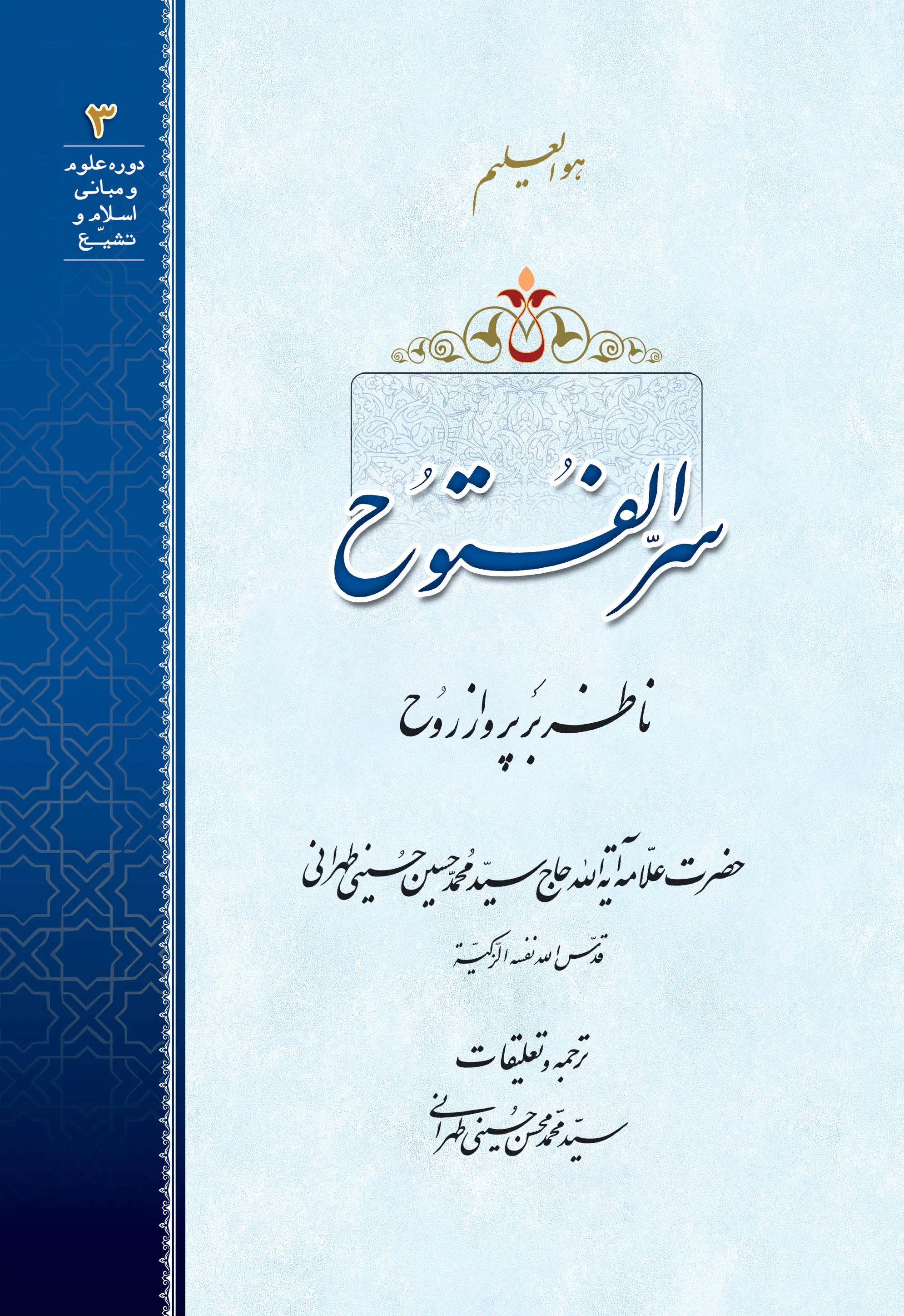 سر الفتوح اثر علامه طهرانی قدّس سرّه که با بیانی شیوا، به تبیین مبانیِ مکتب توحید و عرفان می‌پردازد. این کتاب در حقیقت نقدِ کتاب «پرواز روح» اثر سید حسن ابطحی است. در فصل اول به نقدِ محورهای کتابِ «پرواز روح» پرداخته، و در فصل دوم در ضمن تعلیقاتی، جای جای کتابِ مذکور را مورد تحلیل و بررسی قرار داده‌اند. اهم مطالب: • نقد و بررسی نظریه عدم نیاز به استاد کامل • اثبات فطری بودن و عقلانی بودنِ نیاز به استاد • اثبات نیاز به استاد با توجه به آیات و روایات. • بررسی و تحلیلِ «انکار علمِ حکمت و فلسفه» که انکار آن یعنی دستگاه عقل در وجود انسان، عاطل و باطل است. • اثبات اینکه حجیّت هر چیزی به عقل است حتی کتاب و سنت • ذکر آیات و روایاتی که دعوت به تعقل و تفکر می‌کنند. • نقد و بررسی نظر کسانی که نهایتِ سیرِ انسان را شناخت امام زمان علیه السلام می‌دانند از آنجا که برخی مباحث این کتاب نیاز به شرح و تفسیر بیشتر داشته است حضرت آیة الله حاج سید محمد محسن حسینی طهرانی قدس سره، اقدام به درج مقدمه و تعلیقاتی بس نفیس نمودند که بر غنای مطالب افزوده‌‌ است.