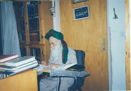 تصویر مرحوم علاّمه طهرانی ـ قدّس الله سرّه ـ در کتابخانه منزل در مشهد مقدّس