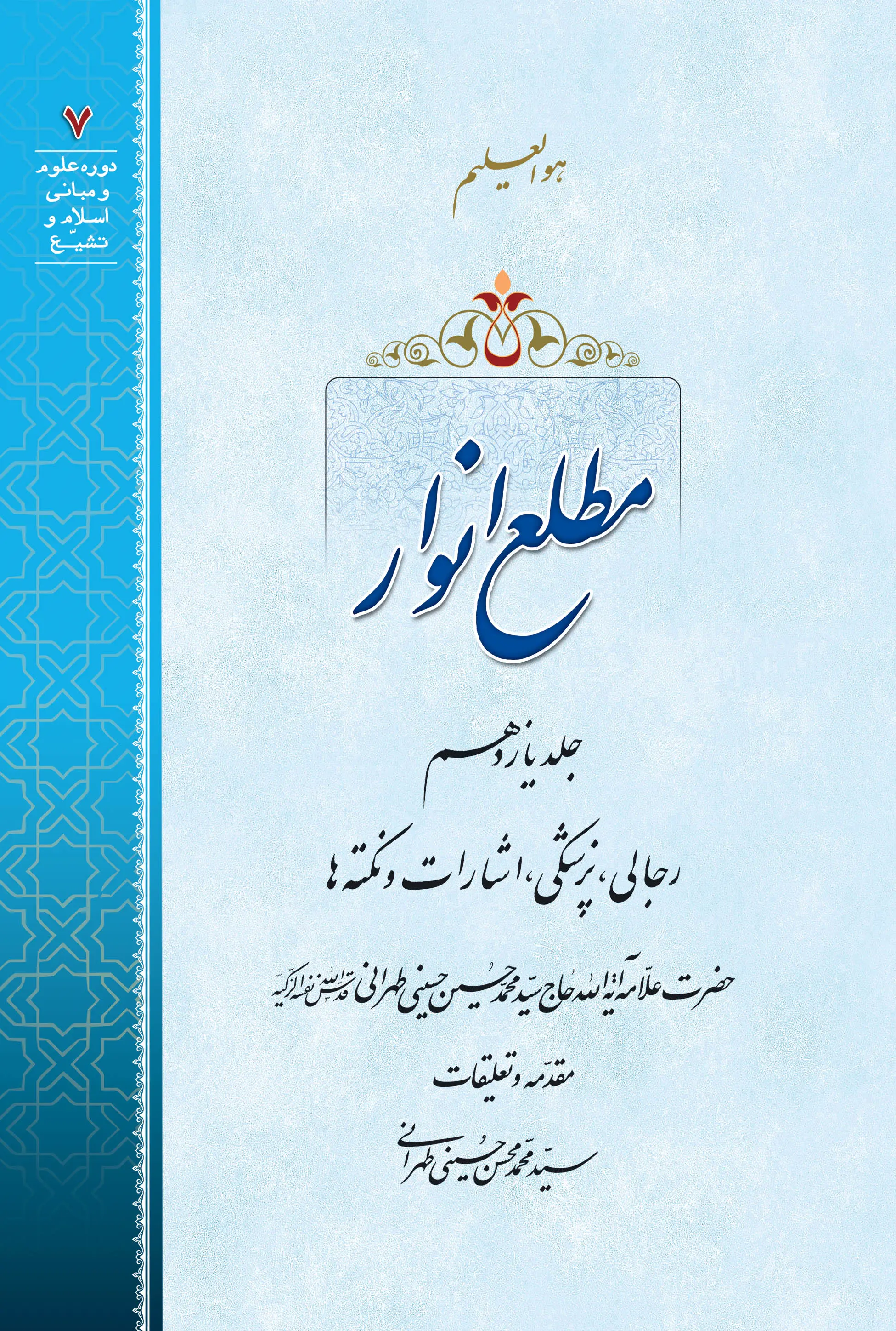 جلد یازدهم از موسوعۀ گرانسنگ «مطلع انوار» اثر حضرت علامه آیة‌الله حاج سید محمدحسین حسینی طهرانی قدّس سرّه، یادداشتها و برداشت‌‌های مؤلف از آثار مختلف، در موضوع «رجال، تراجم، کتاب‌شناسی و برخی مطالب متنوع » می‌باشد. تتبعات و تحقیقات مندرجه در این مجلد می‌تواند در نوع خود برای آشنایان به این موضوعات بسیار مفید و مثمر باشد.  اهم مباحث این مجلّد:  • بخش اول: رجال و تراجم شخصیت‌ها؛ که شاملِ مقدماتی رجالی، بیان برخی اصطلاحات و معرّفی برخی آثار اصلی رجالی، ذکر اسامی اعلام و کنیه‌ها و القاب، و بیان مطالبِ متنوّع رجالی می‌گردد.  • بخش دوم: فهارس و کتاب‌شناسی: که به ذکر مطالب متنوّعی در معرّفی آثارِ مهم، همچون حدیقة الشیعه، مصباح‌الشریعه، تذکرۀ علامه حلی و نثر طوبای مرحوم شعرانی و امثالها پرداخته شده است.    • بخش سوم: مطالب پزشکی؛ که مشتمل بر نقل قولهایی در امور طبابت؛ اعم از مسائل پیشگیری و درمان، خواص و فواید برخی خوراکی‌ها، و ذکر روایاتی در این موضوع، می‌باشد.  • در بخش چهارم و پنجم به ذکر طرائف و لطائف، و ذکر اشارات و نکته‌‌هایی در موضوعات سیاسی و تاریخی و اجتماعی و بیان لغزشهای برخی آثار علماء، و دیگر مطالب متنوع پرداخته‌اند.